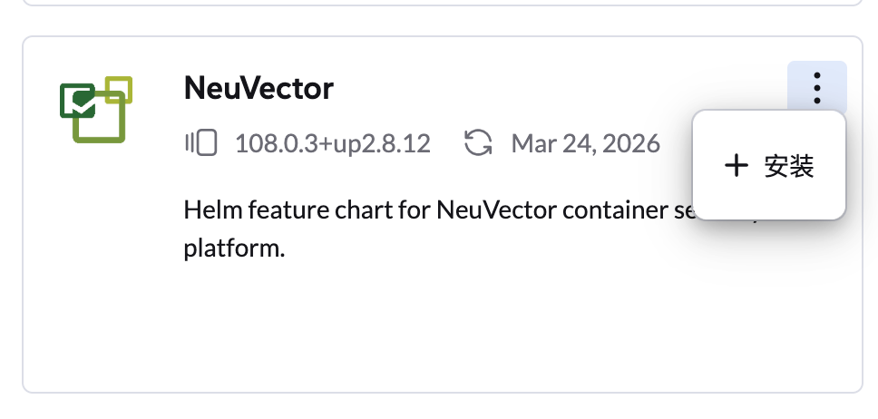 找到 NeuVector App,点击右上角三个点菜单,然后点击安装。